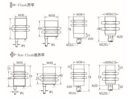 Thread size / 螺紋尺寸: M30屏蔽式 / M30非屏蔽式