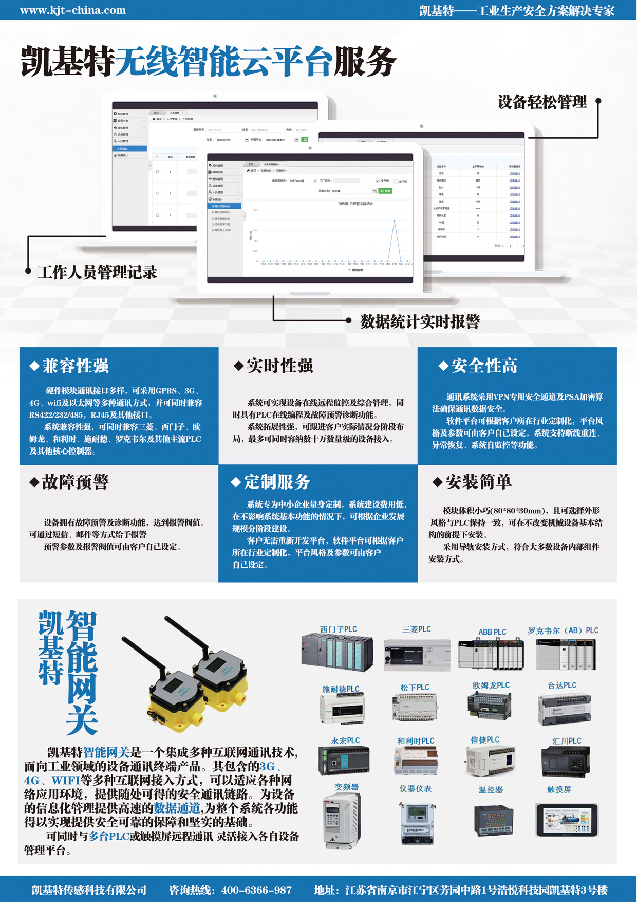 凱基特?fù)碛袑?zhuān)業(yè)的研發(fā)生產(chǎn)精英團(tuán)隊(duì),從無(wú)線傳感器設(shè)備供應(yīng)到軟件開(kāi)發(fā)、云服務(wù)器搭建,為您提供定制化的工業(yè)安全解決方案,讓您緊跟工業(yè)4.0的步伐。